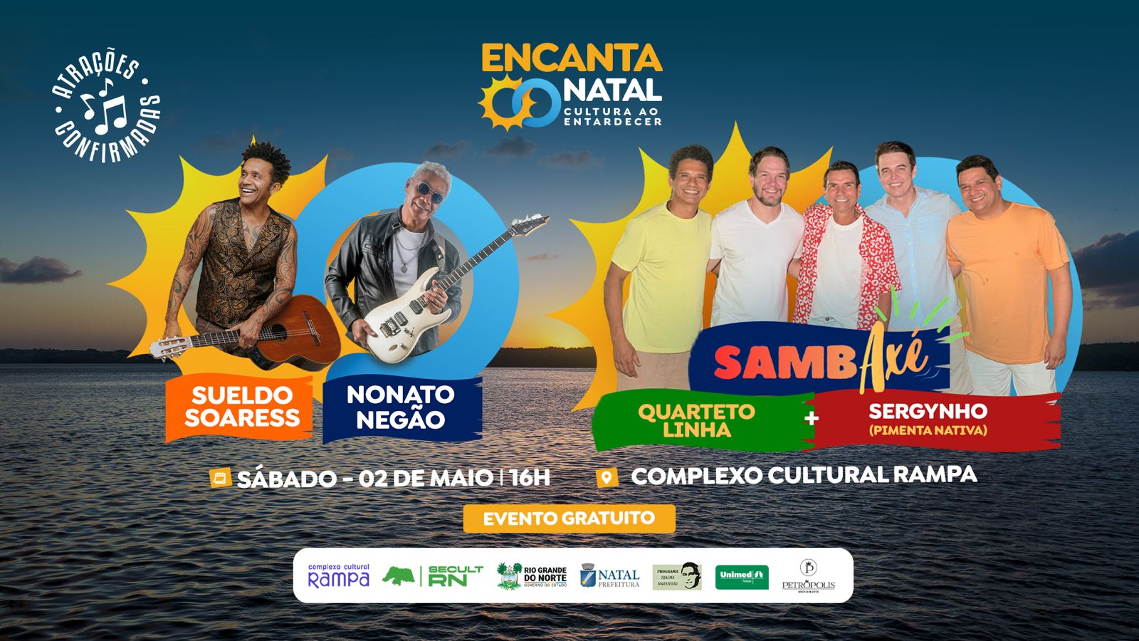 A Unimed Natal, reconhecida como a empresa que mais apoia a cultura no Rio Grande do Norte, é uma das incentivadoras do projeto Encanta Natal – Cultura ao Entardecer, que ganha nova edição no próximo sábado (2), no Complexo Cultural Rampa. A proposta une música, paisagem e convivência em um dos cenários mais simbólicos da cidade, com o pôr do sol dando lugar a uma noite marcada pelo samba e Axé Music.
